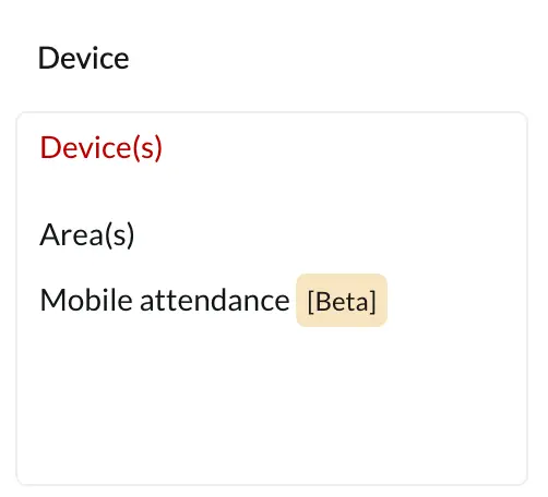 Navigate to the Device section in BC Time as indicated below. Click “Mobile attendance” in order to create your new mobile device.