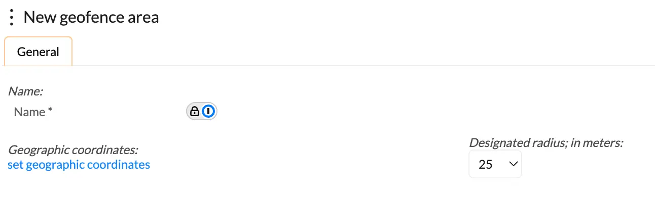Clicking on the meatballs icon will open up a slide window allowing you to create a “New” geofence area.